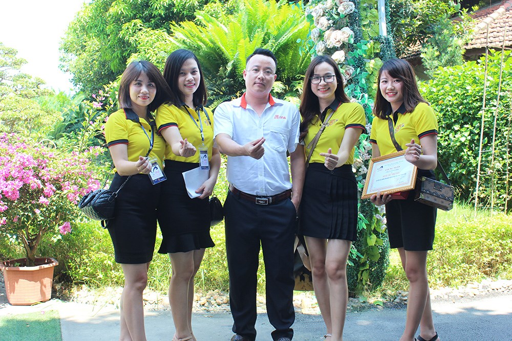 Các đại diện MISA chụp ảnh cùng anh Trần Quang Dũng – Admin Cộng đồng Gia đình kế toán Việt Nam đồng thời cũng là Đại lý của MISA