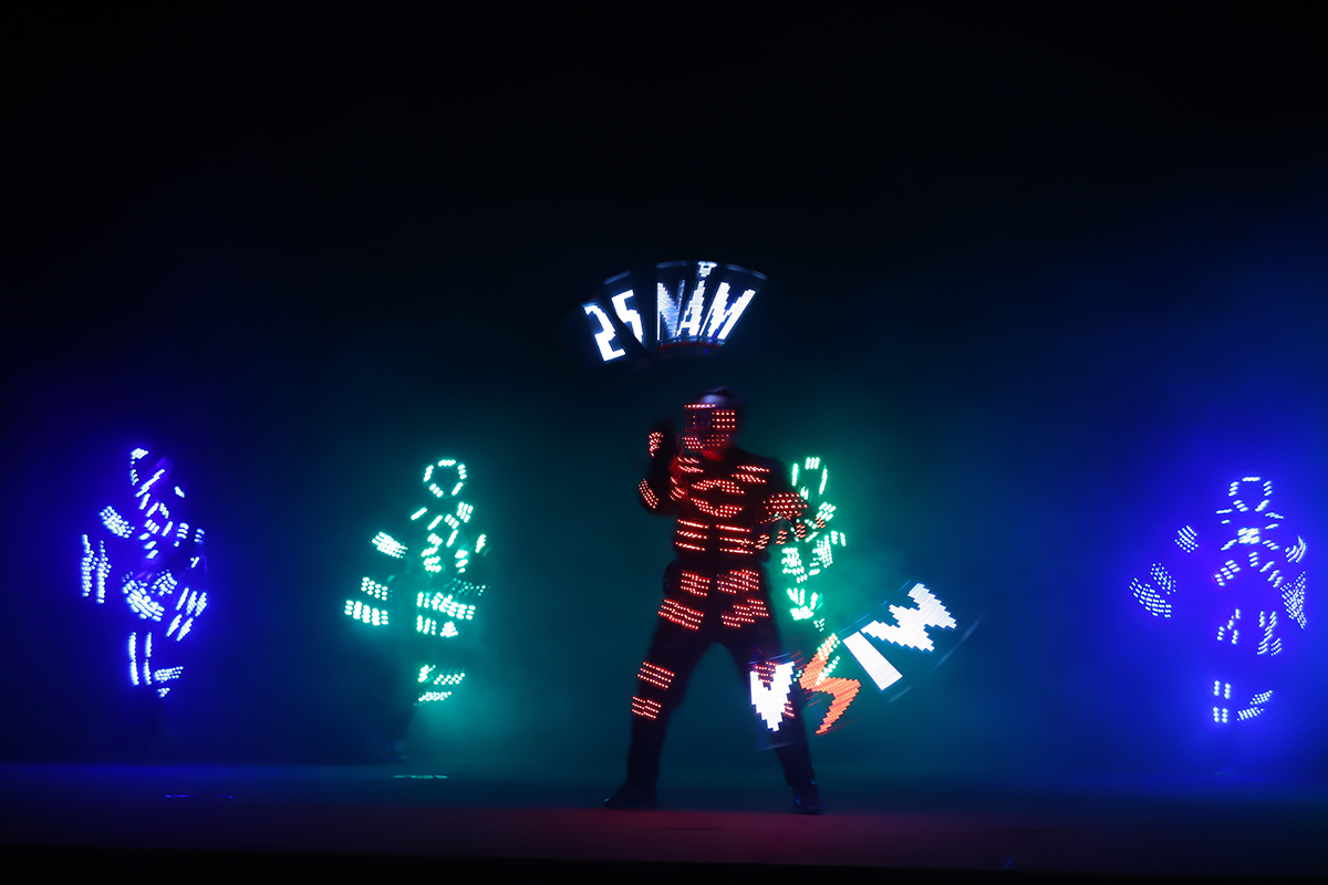 Các tiết mục văn nghệ đều được đầu tư công phu, hoành tráng, sử dụng rất nhiều công nghệ trình diễn mới nhất như múa tương tác led, robot led,… đã thực sự mang tới bữa tiệc âm nhạc, khiến khán giả không ít lần phải vỗ tay tán thưởng