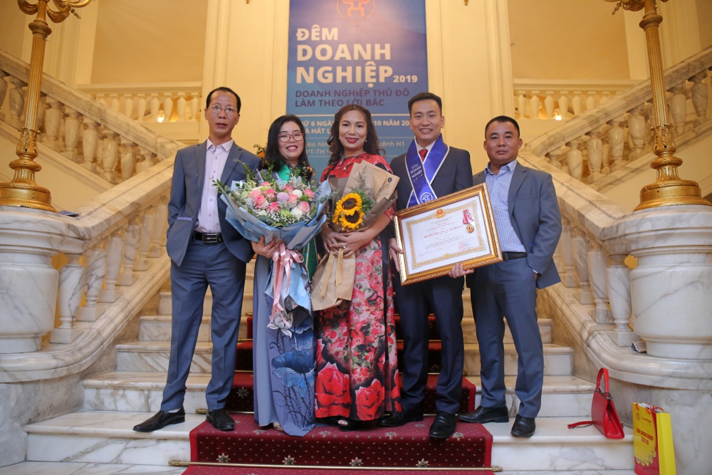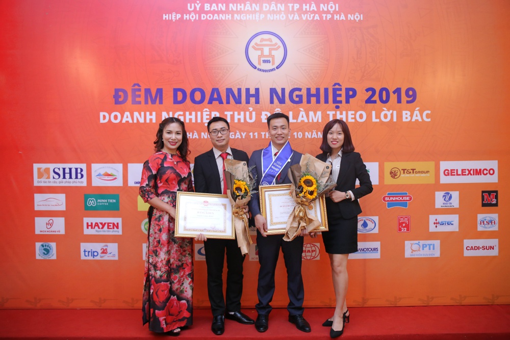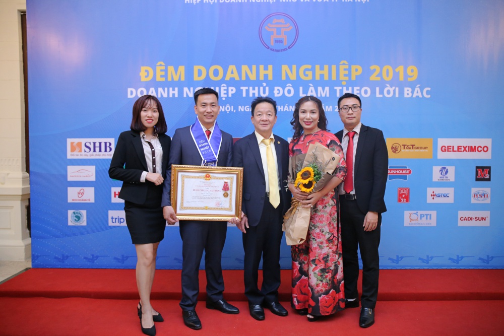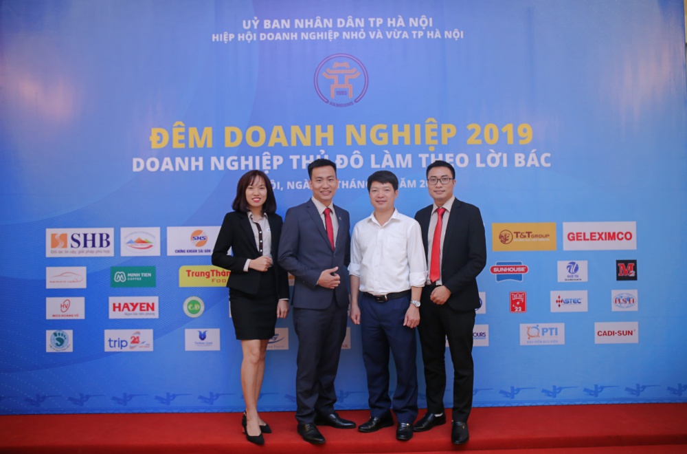 Ông Đỗ Quang Hiển – Chủ tịch Hiệp hội Doanh nghiệp nhỏ và vừa Tp Hà Nội (thứ ba từ trái sang) chúc mừng MISA tại Chương trình Đêm Doanh nghiệp 2019