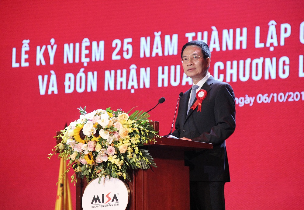 Ông Nguyễn Mạnh Hùng – Bộ trưởng Bộ Thông tin & Truyền thông – phát biểu tại Lễ kỷ niệm 25 năm thành lập Công ty Cổ phần MISA và đón nhận Huân chương Lao động hạng Nhì