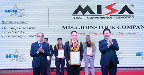 Ngày 22/10/2019, Lễ trao danh hiệu TOP 50 + 10 Doanh nghiệp CNTT hàng đầu Việt nam 2019 diễn ra tại Đà Nẵng. Với những thành tích ấn tượng trong nghiên cứu và phát triển công nghệ, MISA tiếp tục lọt Top 50 doanh nghiệp CNTT hàng đầu và TOP 10 Doanh nghiệp có năng lực công nghệ 4.0 tiêu biểu tại Việt Nam.