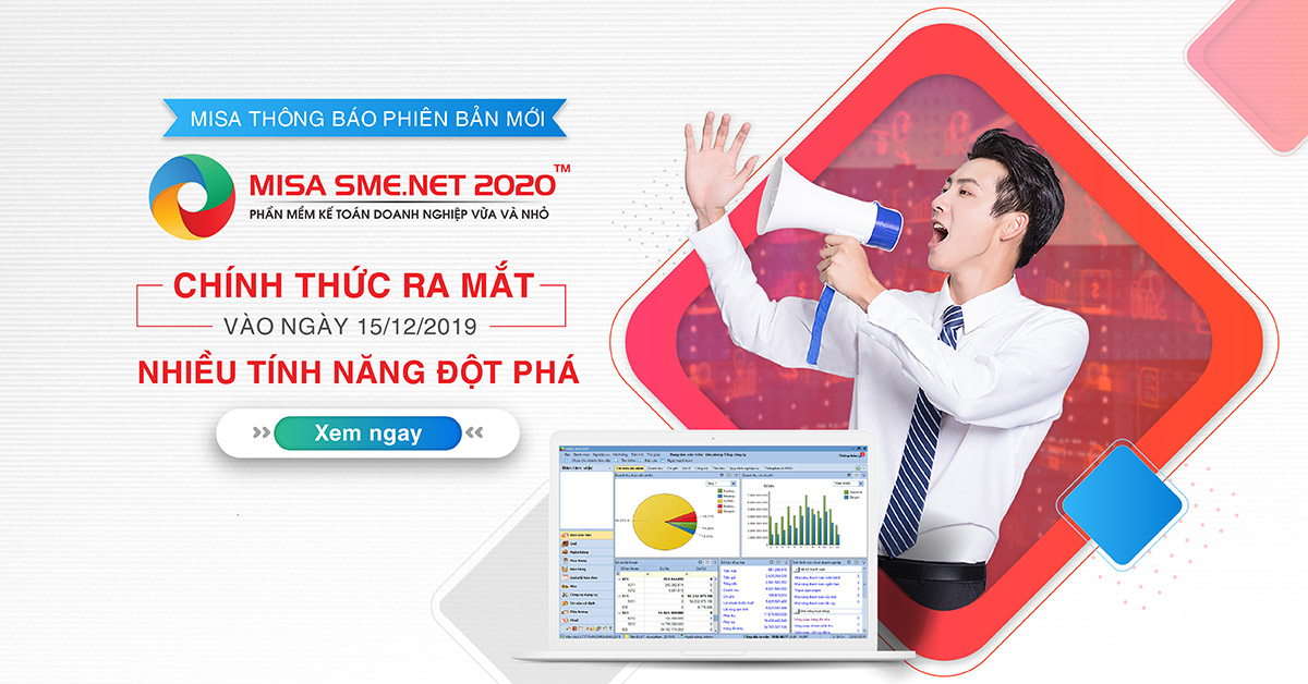 Với phương châm không ngừng thay đổi, hoàn thiện sản phẩm nhằm gia tăng lợi ích cho cộng đồng doanh nghiệp. Dự kiến ngày 17/12, MISA sẽ ra mắt phần mềm kế toán MISA SME.NET phiên bản 2020, với nhiều tính năng mới cải tiến và nâng cấp hơn các phiên bản cũ giúp doanh nghiệp chuyển đổi số nhanh chóng, tối ưu hóa chi phí và tối đa hóa lợi nhuận.
