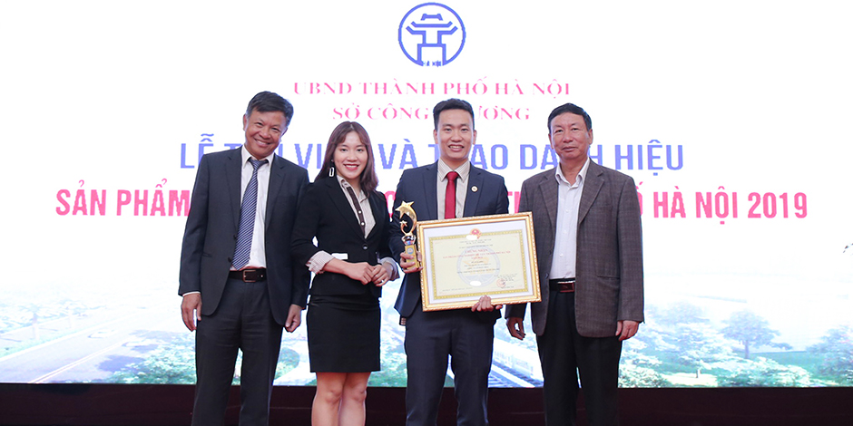 Ông Nguyễn Phi Nghị (đứng thứ ba từ trái sang) – Phó Giám đốc VP MISA Hà Nội, đại diện Công ty Cổ phần MISA – lên nhận cup và bằng khen từ Lãnh đạo UBND Thành phố