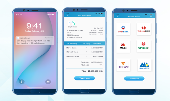 Hóa đơn điện tử còn cung cấp tính năng thanh toán online, giúp giao dịch mua bán diễn ra nhanh chóng, tiện lợi hơn dù cách ly hay không. Với tính năng này, kế toán không cần tiếp xúc tiền mặt hay ra ngân hàng chuyển khoản. Được biết, khách hàng có thể tiến hành tra cứu hóa đơn meInvoice.vn và chọn thanh toán ngay qua nhiều hình thức như quét mã VNPay-QR, thẻ ATM, thẻ quốc tế, ví điện tử. Không chỉ giúp tiền mua hàng về nhanh hơn mà còn giúp khách hàng an tâm giao dịch, giảm thiểu nguy cơ lây lan dịch.