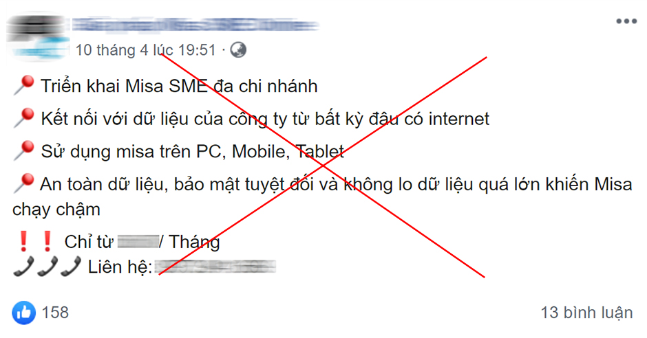Trong thời gian vừa qua, trên mạng xã hội liên tục xuất hiện các quảng cáo về việc sử dụng phần mềm kế toán MISA online giá rẻ. Qua tìm hiểu, đây là hình thức sử dụng phần mềm MISA trên các máy chủ ảo (VPS), do cá nhân tự làm, tiềm ẩn rất nhiều nguy cơ bị mất dữ liệu của khách hàng.