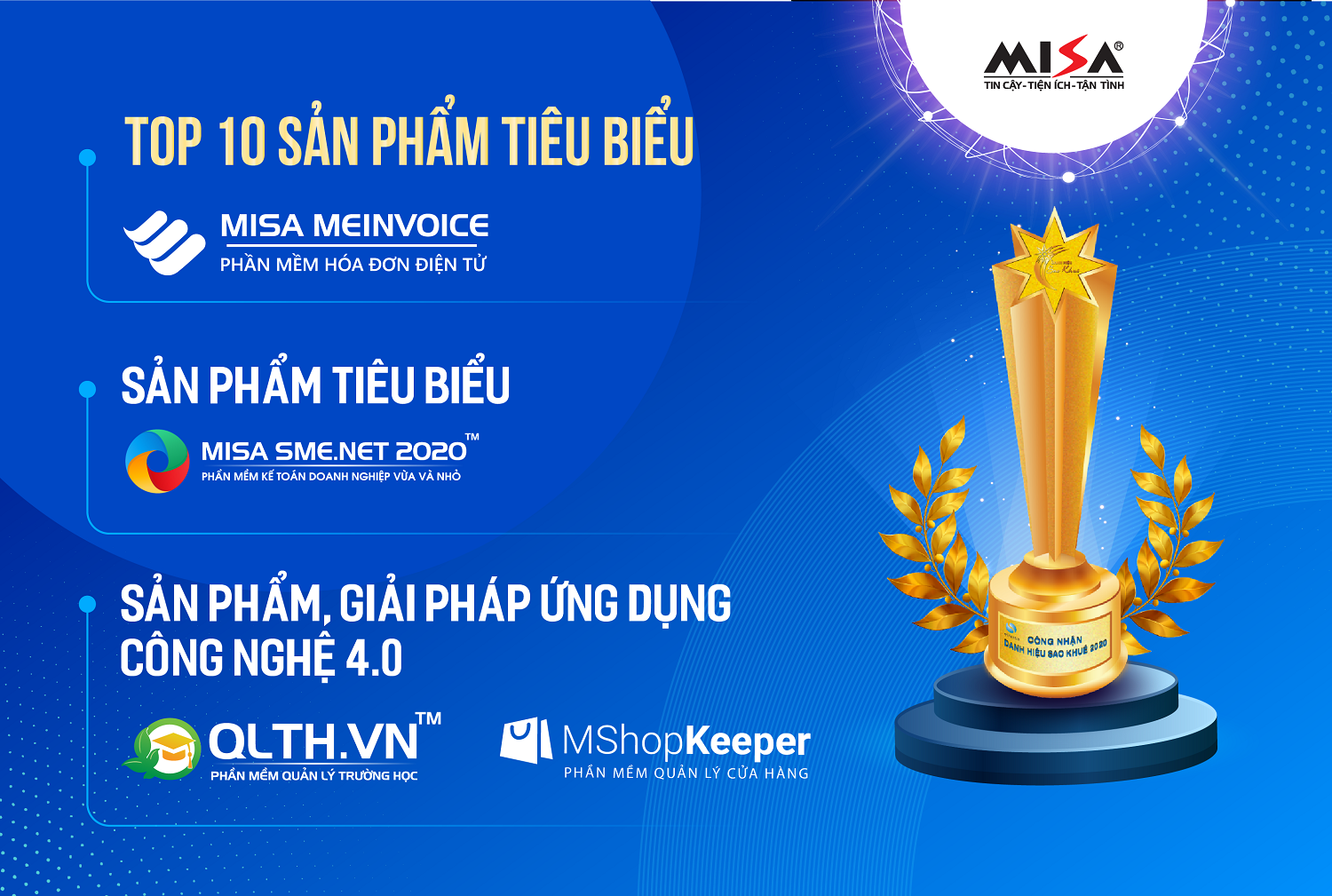 Vượt qua nhiều vòng thẩm định khắt khe, Hội đồng giám khảo đánh giá cao tính năng ưu việt, các công nghệ tiên tiến sáng tạo cùng với khả năng bảo mật cao, MISA đã vinh dự nhận 04 danh hiệu Sao Khuê 2020 cho: Phần mềm Quản lý trường học QLTH.VN, phần mềm Quản lý cửa hàng thời trang MshopKeeper, phần mềm Kế toán MISA SME.NET 2020 và đặc biệt, phần mềm hóa đơn điện tử MISA MEINVOICE đã lọt Top 10 sản phẩm tiêu biểu.