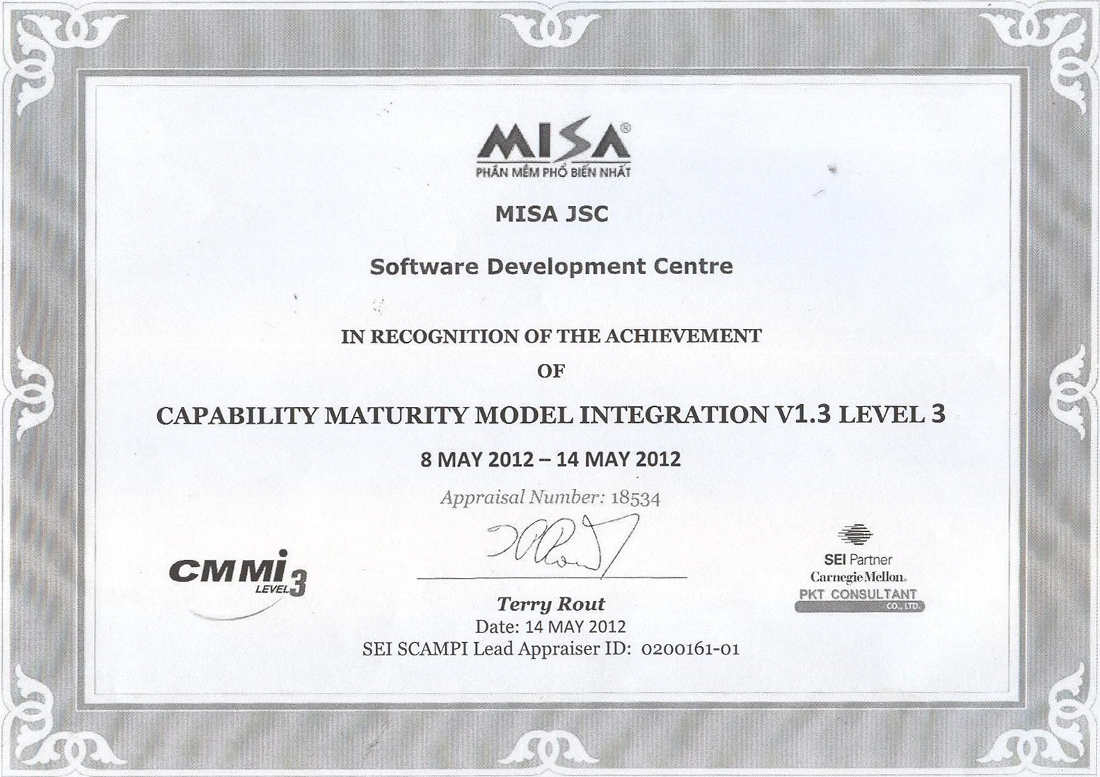 Chứng chỉ CMMi Level 3 đã khẳng định năng lực của MISA trong lĩnh vực sản xuất phần mềm và các dịch vụ liên quan của công ty. Tên của MISA đã được SEI công bố trên website của SEI trong danh sách các công ty đạt chứng chỉ trên toàn cầu (Xem tại đây). Tại Việt Nam, hiện mới chỉ có 18 công ty đạt được chứng chỉ này.