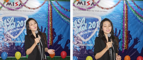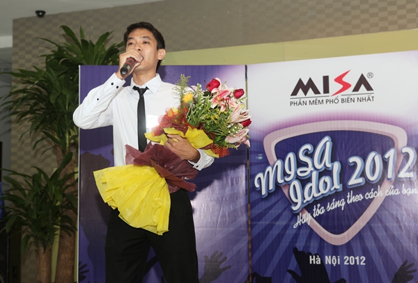 Chưa hết bất ngờ, cả hội trường đứng lên, hò reo chào đón sự xuất hiện của Tổng Giám đốc Nguyễn Xuân Hoàng và Phó TGĐ thường trực Đinh Thị Thúy trên sân khấu với vai trò là thì sinh – thí sinh đặc biệt tham dự vòng loại cuộc thi MISA Idol 2012.
