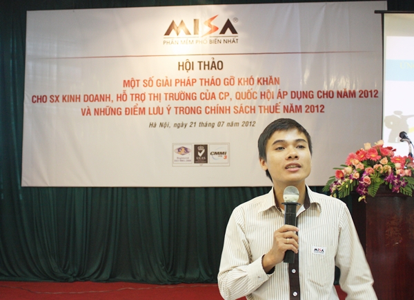 Ông Phạm Văn An – Phó Giám đốc văn phòng MISA Hà Nội kiêm Giám đốc Trung tâm kinh doanh doanh nghiệp phát biểu khai mạc khóa hội thảo: “MISA luôn mong muốn đem lại cho khách hàng những sản phẩm và dịch vụ CNTT tốt nhất làm thỏa mãn mọi yêu cầu của khách hàng với giá thành hợp lý nhất. Vì vậy mỗi ý kiến đóng góp của khách hàng sẽ giúp cho sản phẩm cũng như dịch vụ của chúng tôi hoàn thiện hơn rất nhiều”.