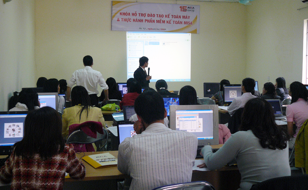 Từ ngày 09/4 -11/4/2009, tại Hà Nội, Công ty Cổ phần MISA đã mở khóa đào tạo kế toán máy và thực hành phần mềm cho các giảng viên đến từ nhiều trường Đại học, Cao đẳng, Trung cấp… Hơn 40 giảng viên đến từ 5 trường: Trường ĐH Công Đoàn, Hệ Trung cấp ĐH Công Đoàn, CĐ Xây dựng số 1, ĐH Thương mại, Trung cấp công nghệ và quản trị đông đô đã về tham dự khóa đào tạo.