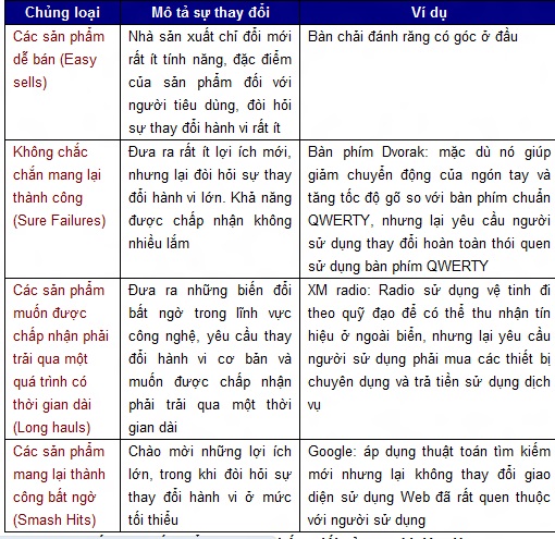 Hầu hết mọi sản phẩm mới đều yêu cầu phải có sự thay đổi. Để xác định mức độ thay đổi mà bạn yêu cầu người tiêu dùng phải có khi sử dụng sản phẩm mới, bạn phải quyết định loại sản phẩm nào phù hợp nhất đối với sự đổi mới của bạn: