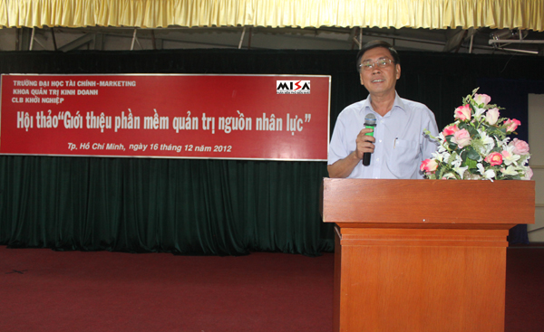 Tham dự Hội thảo, về phía nhà trường có ThS. Bùi Đức Tâm – Phó trưởng khoa Quản trị kinh doanh, về phía MISA có ông Phạm Phú Lâm – Phó Giám đốc Trung tâm kinh doanh doanh nghiệp văn phòng MISA Tp.HCM và các thầy cô giáo cùng hơn 400 sinh viên khoa Quản trị kinh doanh.