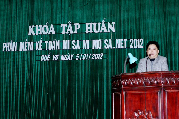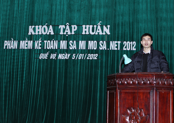 Phát biểu tại lễ khai mạc tập huấn, ông Hoàng Hùng – Trưởng phòng Tin học – Sở tài chính Bắc Ninh chia sẻ: “Phần mềm MISA là phần mềm kế toán tiện ích, đáng tin cậy, đã được các xã trong địa bàn huyện triển khai sử dụng. Nay nhằm chuyên nghiệp hóa và làm tốt công tác quản lý cũng như để nâng cao hiệu quả làm việc, tạo sự ổn định cho các cán bộ nhân viên, chúng tôi đã quyết định triển khai phầm mềm kế toán HCSN MISA Mimosa.NET 2012 cho các các đơn vị thuộc phòng Giáo dục huyện. Tôi mong rằng cán bộ giảng viên MISA sẽ giúp đỡ và chỉ dẫn nhiệt tình cho các đơn vị để các cán bộ kế toán trường đều sử dụng tốt phần mềm.”