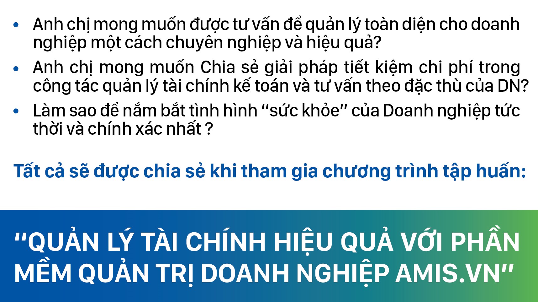 • Báo cáo viên: Chuyên viên tư vấn tài chính kế toán của Công ty Cổ phần MISA