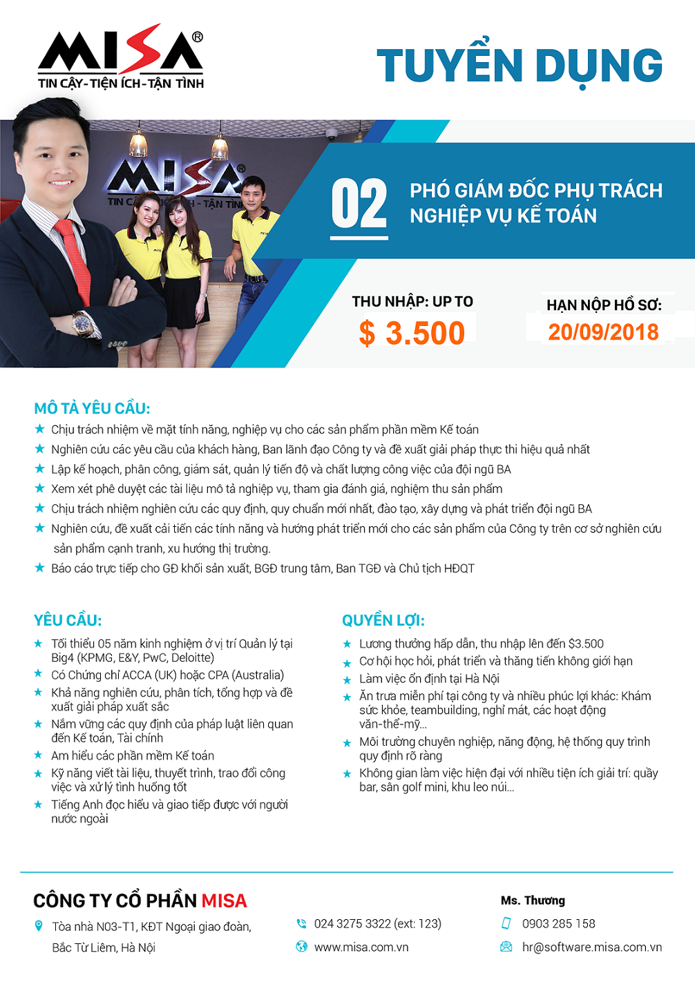 - Công ty chuyên nghiệp về phần mềm – sản phẩm MISA luôn dẫn đầu thị trường về tính tiên phong và ưu việt về công nghệ