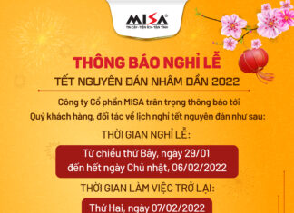 MISA thông báo lịch nghỉ tết Nhâm Dần 2022